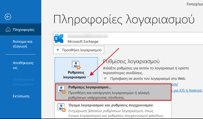Ρυθμίσεις λογαριασμού → Ρυθμίσεις λογαριασμού…