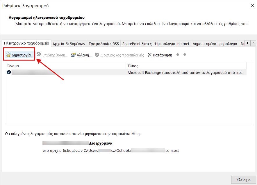 Κάντε κλικ στο Δημιουργία (Add Account).