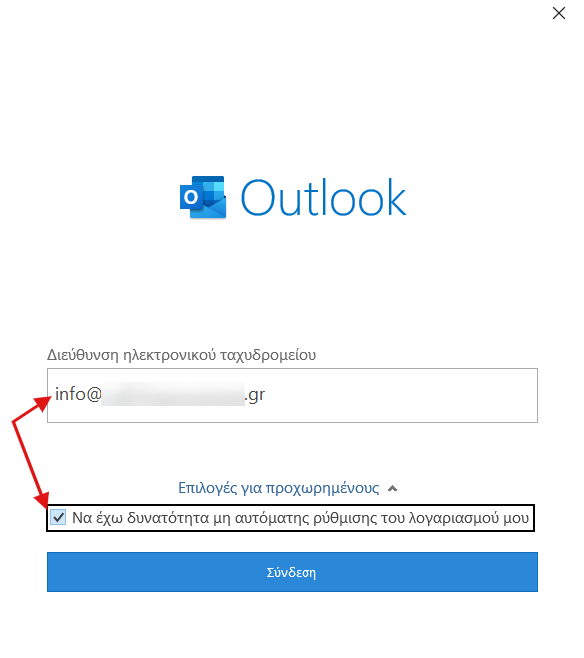 - Τη διεύθυνση e-mail σας (π.χ. info@yourdomain.tld)