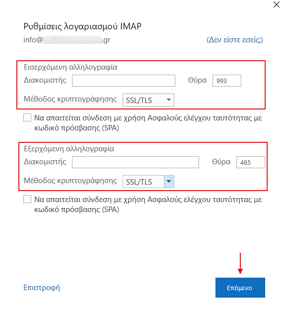 5) Συμπλήρωση ρυθμίσεων διακομιστών