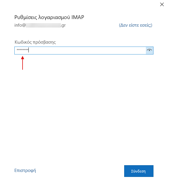 Πληκτρολογήστε τον κωδικό πρόσβασης του email σας → πατήστε Σύνδεση (Connect).