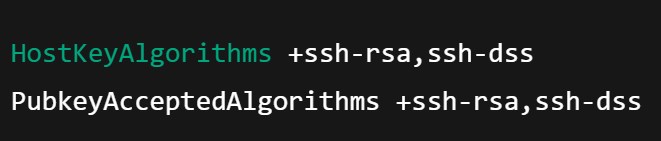 Σε OpenSSH 8.8 ή νεότερο, ενδέχεται να χρειαστεί να ενεργοποιήσετε RSA με SHA-1 προσθέτοντας